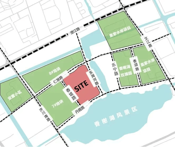 泰兴位于长江下游北岸,蕴藏婉约的江南风情。泰兴新城湖畔天境基地南侧比邻香榭湖风景区,整体城市界面良好。