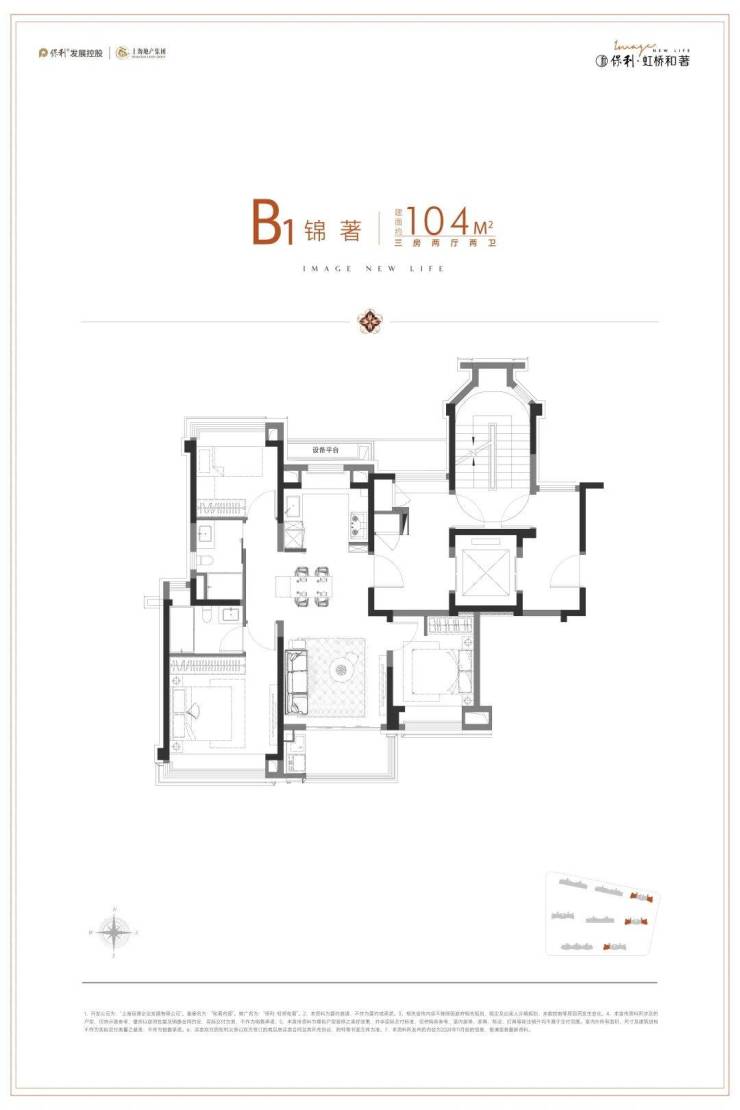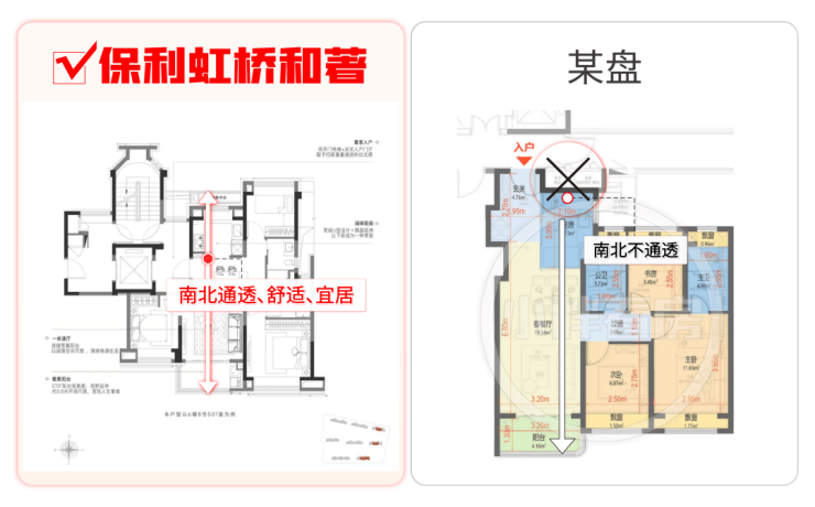 但保利虹桥和著的建面约104㎡3房2卫,却很好的解决了以上所有问题: