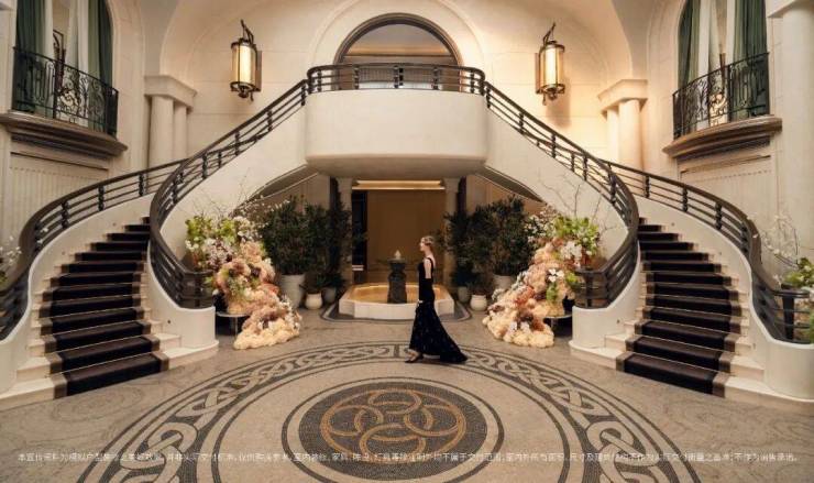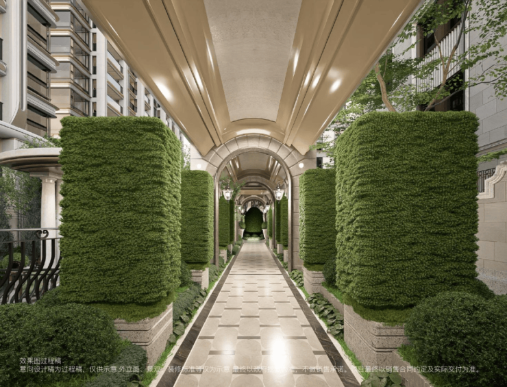 园林上,以“一庭一廊、两巷三园、十境共生”的叙事格局,融合全球顶奢酒店花园灵感与上海在地文化肌理:入口致敬伦敦半岛酒店仪序,石狮静守彰显尊崇;中央庭院呼应华尔道夫酒店羿庭柱廊序列,营造韵律社交场景;花园布局借鉴巴黎丽兹酒店对称庄园格式,秩序中藏诗意;一步阳台溯源孙科别墅优雅意境,续写海派从容。更点缀罗斯柴尔德别墅景观亭、武康路公馆铁艺雕花等经典元素,铺陈出一幅可漫步、可沉浸的世界性园林画卷。