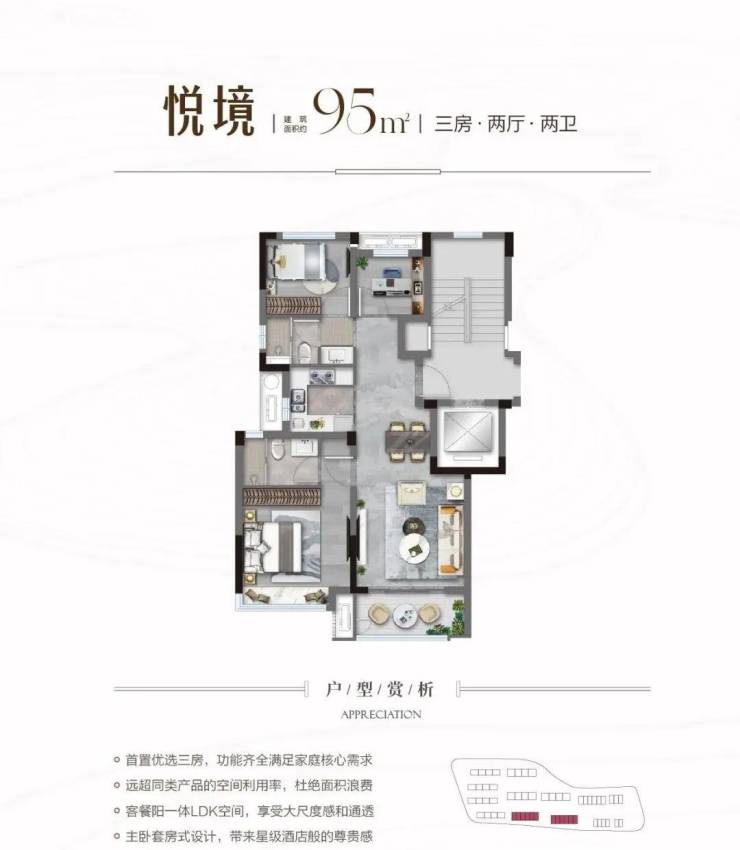 澜泊樾府项目占地面积约2.5万㎡,建筑面积约4.95万㎡,容积率1.20,绿地率30.00%,建筑密度30.16%。项目主要规划了五~七层洋房和排屋,总共282户,机动车位359个,非机动车位490个。洋房产品面积95-128㎡,排屋产品面积256-283㎡。