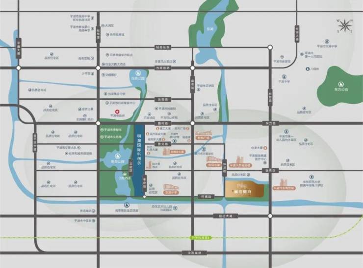 澜泊樾府 situated in the core area of Pinghu City, offers a perfect blend of urban convenience and natural tranquility. The project is surrounded by a plethora of生活配套设施, including Pinghu Wuyue Plaza, Minghu Park, Qingying Ecological Green Corridor, Minghu Flower Sea, Raffles Hotel, Administrative Service Center, and Pinghu Passenger Transport Center. These facilities provide residents with easy access to shopping, entertainment, and leisure activities.