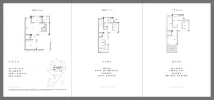 二层设计了双套房,安放专属、独立的静谧生活理想。三层则打造了整层行政套房,书房空间独立并连通露台。可以在露台铺上一张软垫,对着青山冥想,感受耳边轻柔的山风,来一场心灵瑜伽;或架上一台天文望远镜,和孩子一起探索宇宙和星空的奥秘。