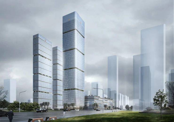 :预计层高约3.2-3.5米,搭配大面积玻璃幕墙或挑空设计。