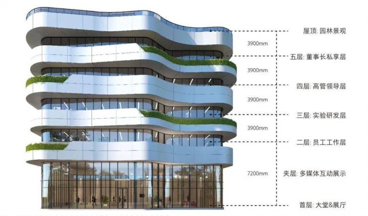 多层研发楼则采用“城市未来派”风格,建筑立面使用铝板和玻璃幕墙材质,融入形似海湾的曲线设计,彰显出建筑的高端质感。此外,园区还设计了立体绿篱、屋顶露台、约28米超宽天幕、园区运动文化空间、交流分享平台等五重空间,内部规划9米超大柱距空间、约7.2米挑高一层空间,将为入园企业打造多元化、多用途的办公空间。