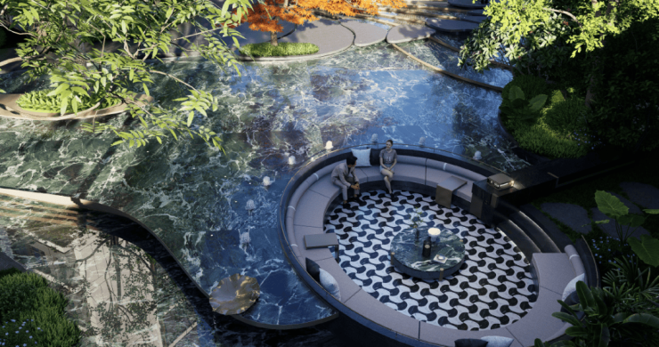 九园:潮汐花园(社区外围口袋花园)、浔湾秘境(会所式入户)、社交剧场、漫游森境、下沉会所、阅读花园、社交花园、自然博物馆。