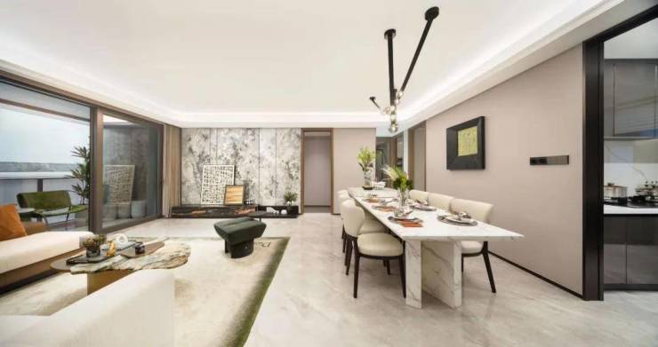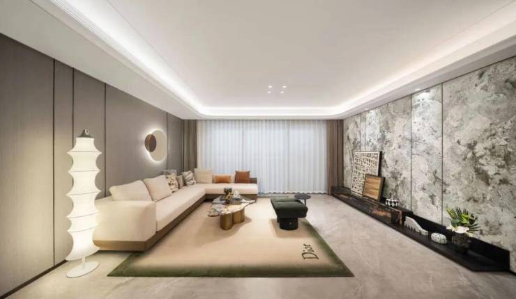 甄选雪山银狐、希腊白、云朵灰岩板背景墙,以独特纹理质感演绎空间的奢华张力