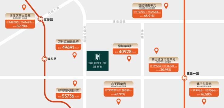 ✨直距项目约1公里,萧山北干西地块成交楼面价约3.8万/㎡,价差显著