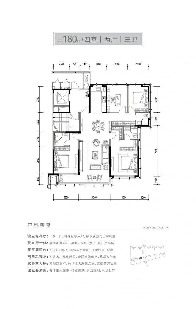 户型面积:180㎡/210㎡/220㎡/240㎡