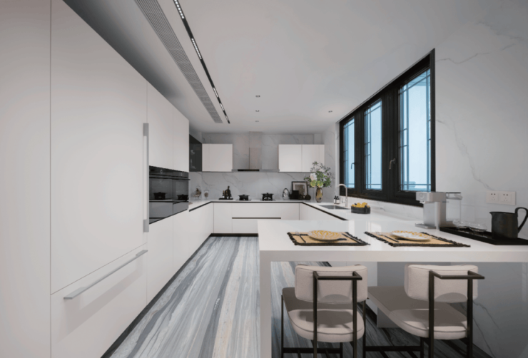 公共区:意大利蓝金沙大理石铺装,ARMANI橱柜、Poliform衣柜[[1]。