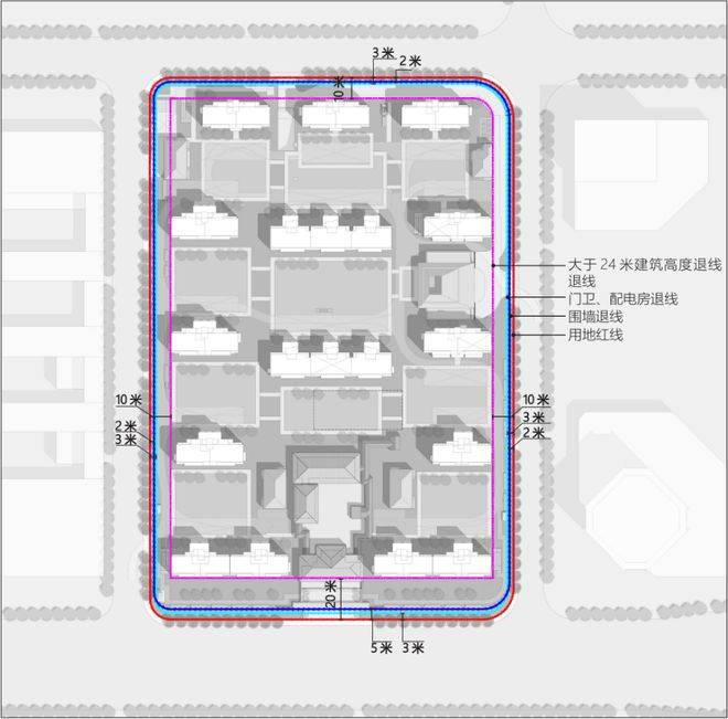 整个项目四向各退红线2-5米,确保了访客车位都停在围墙外,整个小区真正意义上实现了人车分流,是板块首个,不惜成本,主动割肉砸品质的项目。