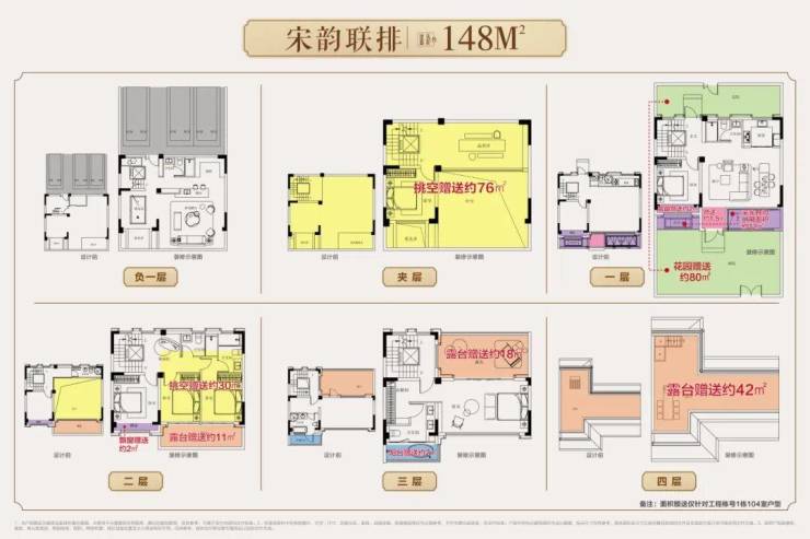 148㎡户型:以最大实得面积约592㎡超大空间,实现约4倍拓展,涵盖多元生活场景。最大约133㎡庭院、约152㎡地下一层及夹层、约38㎡产权车位,再加上露台、阳台、挑空等多维拓展空间约120.5㎡,让每一寸面积都物尽其用。地下5.5米挑高夹层可打造影音室、健身房或酒窖;大露台可分区域规划烧烤区、观景台、空中花园等,全场景落地满足家庭多元需求。