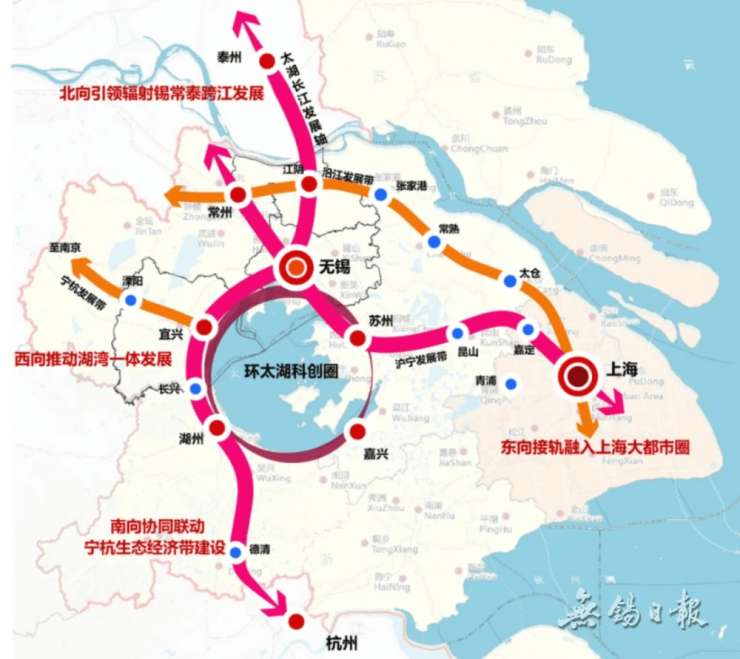 无锡作为长三角几何中心,向东融入上海大都市圈,向西直面太湖湾科创带。随着长三角一体化上升为国家战略,联动周边的环太湖城市群,在互联互通共建共享中全面打造“国际湾区”,见证这片土地的澎湃雄心。无锡“太湖湾科创带”规划“一核三湾,一城十园”,打造国内一流、具有国际影响力的科技创新高地。