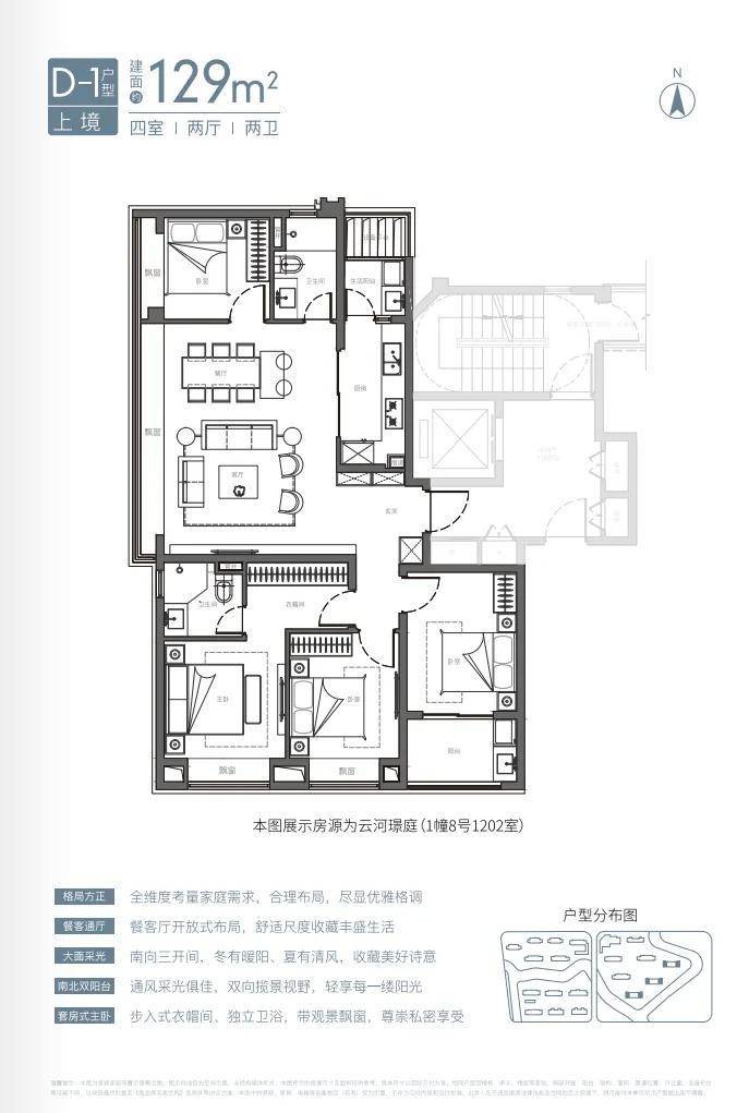 项目129平四房两厅两卫配置,功能齐全,满足终极置业需求;三开间朝南,向阳而居,6.1米侧厅布局,枕水而居,尽享滨水花园景观视野;开敞式书房,空间感升级,侧向飘窗,景观渗透更加充分。
