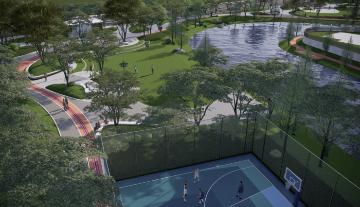 据悉,沿滨河岸线布置功能场地 , 打造更多的水岸生活场景;东地块的东侧还会打造一个约1.8万方的水岸公园,公园北角还将修建篮球场;另外社区内部还将打造大面积架空层,功能上更全面满足业主日常活动需要。