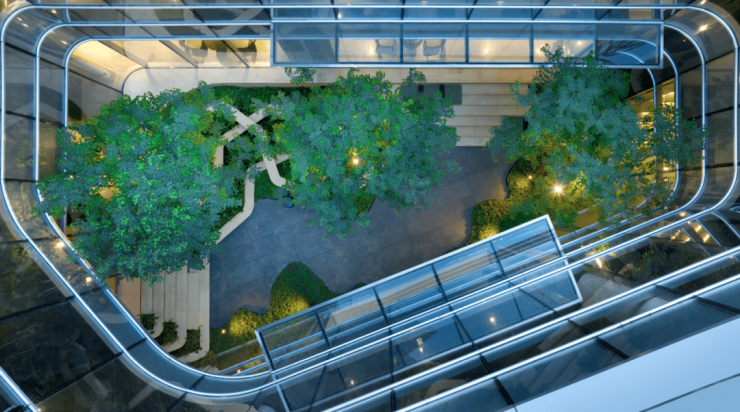 来自泰国的景观设计大师Pok认为,在设计景观时候要与建筑相得益彰,并主张自然是一切美好生活的归属,也是灵感意蕴的源泉。在T-ONE潮博的景观营造中,他从钱塘江潮水的叠浪中得到灵感,将延绵起伏的景观韵律融入花园中,从而勾勒出一座曲线流动的“江潮绿洲”。