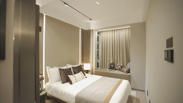 主卧入门北侧空间可以打造成一个衣柜,拓展室内的收纳空间。 市区建面约100㎡以内户型大多是2+1房设计,次卧远达不到如此宽敞,大多改造为书房,但本项目2个次卧的可使用面积都比较高,放下一张1.5x2米的床毫无难度。且所有房间均有飘窗。