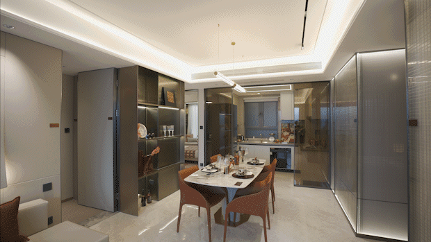 面宽约8.8米的大气落客大堂,搭配石库门设计,让业主每一次归家都充满仪式感和尊崇感。