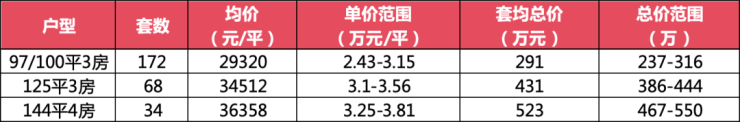 根据一房一价表,首批房源中的约97/100㎡3房2厅2卫户型,均价仅29320元/㎡!单价最低的约2.43万/㎡,总价最低237万起!总价两百多万就能买到顶科的海景3房,这性价比简直了!
