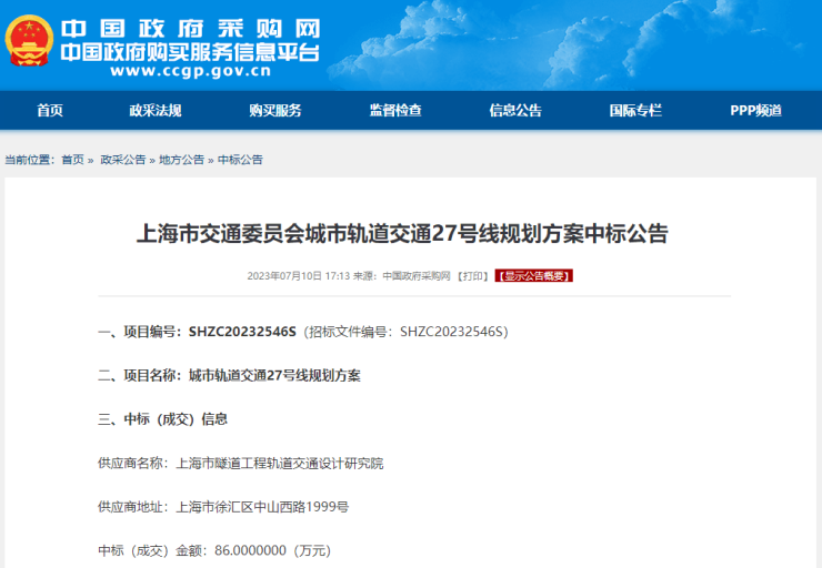 值得注意的是,7月10日政府网上公示27号线中标公告,预示着27号线(规划)正在加速推进中!