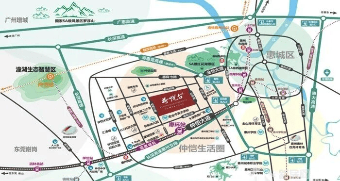 【4城市快车道】:本项目是作为仲恺大道与金恺大道这两条主干道通往惠城、仲恺的首站,15分钟轻松享受城区配套,还未通车的惠新大道未来将与金恺大道无缝衔接,四环南路段建成后将加速与惠城河南岸、金山湖的连接 【四高速环绕】:去往深圳,从本项目出发,开车3公里只需要花5分钟就可以到平南高速收费口,走长深高速,40分钟就可以抵达深圳区域。30分钟抵达河源、惠阳,40分钟抵达大亚湾,去往广州您可以走广惠高速,45分钟就可以抵达广州区域,去往东莞,从我们项目出发,7.3公里的距离到达伯公坳高速收费口,走潮莞高速/惠莞高速,40分钟就可以抵达东莞区域; 【三轨道交通】:惠环站离本项目的直线距离不到600米。