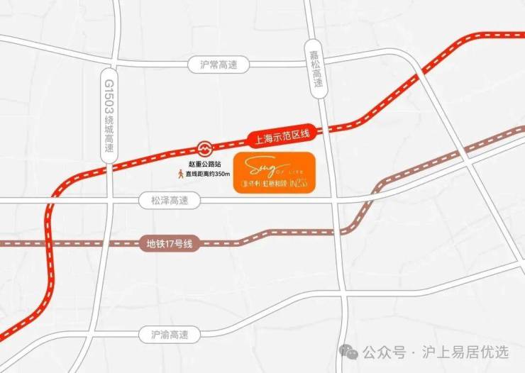 保利虹桥和颂·IN255不仅有轨交规划正在落地,且直线距离示范区线赵重公路站(在建)仅约350米,是不可多得的真轨交盘,2站前湾、3站虹桥枢纽、5站华为基地。