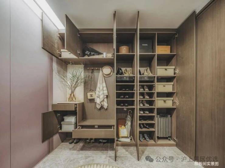 入户有独立玄关,出入更具仪式感的同时也增加了收纳功能。