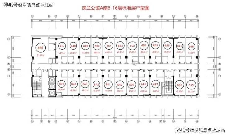 👉A座单层平面图: