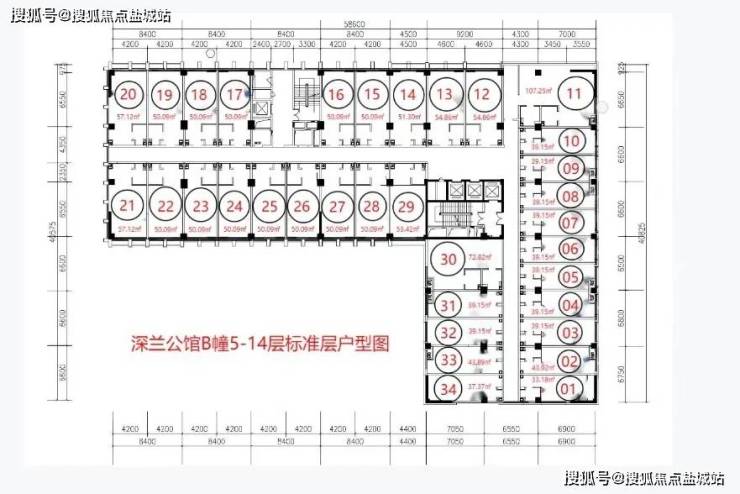 👉B座单层平面图: