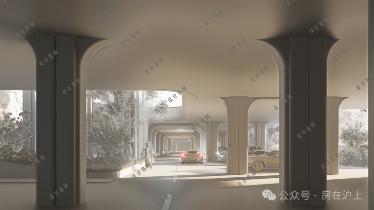 项目上层则为悬浮的“浮岛花园”住宅区,住宅组团如“浮岛花园”悬浮于城市之上,实现真正意义上的人车分流与立体绿化。