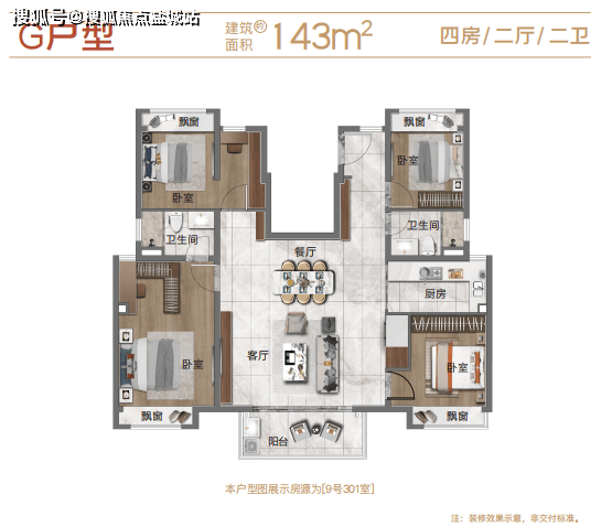 中叠是建面约143㎡大平层,超大面宽,房间位于四个角,相互干扰少,得房率高,舒适度拉满。