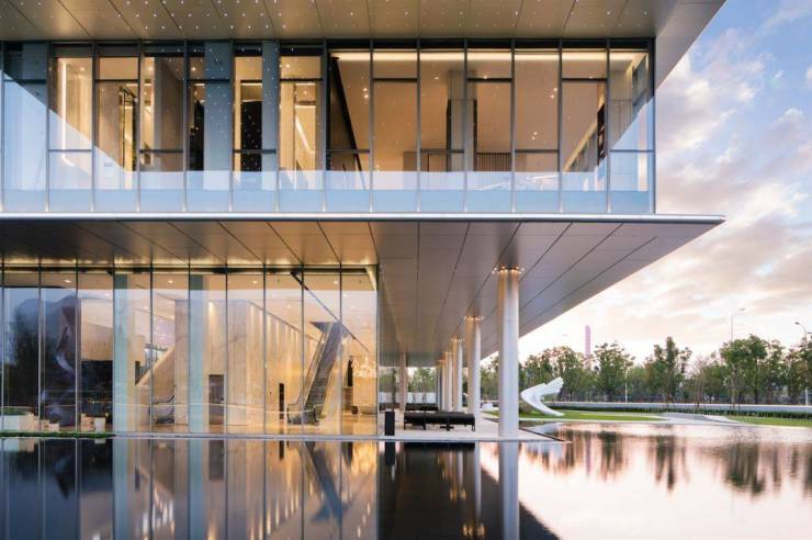 如今,它的建筑立面已部分呈现,一个个高级灰的横向大玻璃带、银色的L形金属大折板,璀璨如钻,又冷静沉稳,美到让人摒住呼吸。