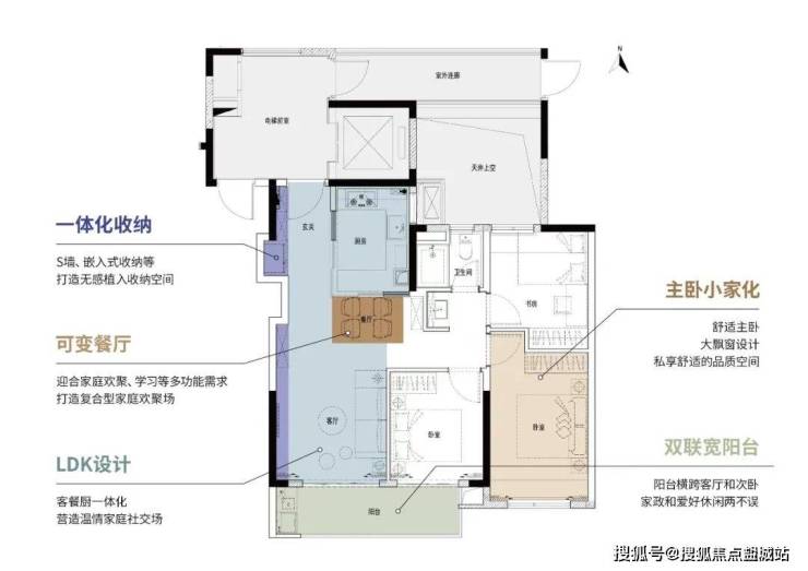 LDK餐客厅家庭社交主场 / 瞰景双阳台 / 一体化收纳体系 / 主卧小家化