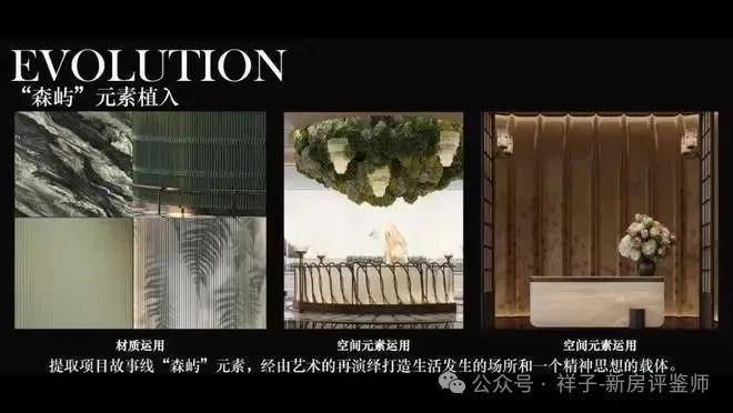 上海象屿天宸雅颂项目,以森林为灵感,宏观提取叶脉形态,表现自然的脉络与流动;同时深入微观的细胞视角,提取其纹理与符号,以几何纹理与结构逻辑表达自然的秩序与美学,塑造出了“花瓣状的母题造型”,打造兼具流线感与秩序感的视觉艺术体验。