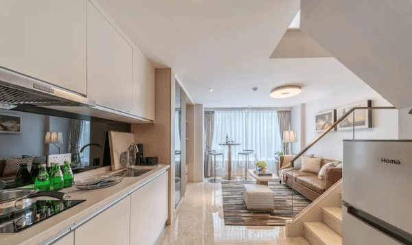 盘古悦天地建面约40-50平米的产品,层高约4.5米,上下每层的层高均在2米以上,动静分离,每户均有阳台,且都通有天然气