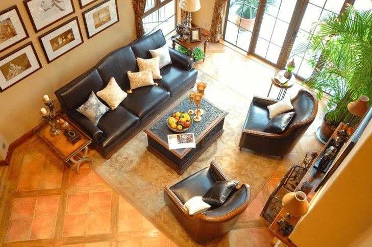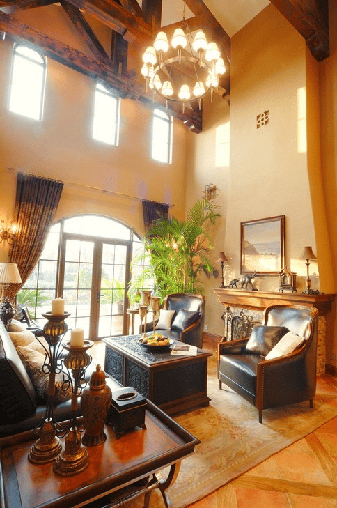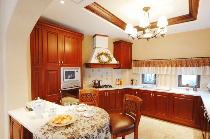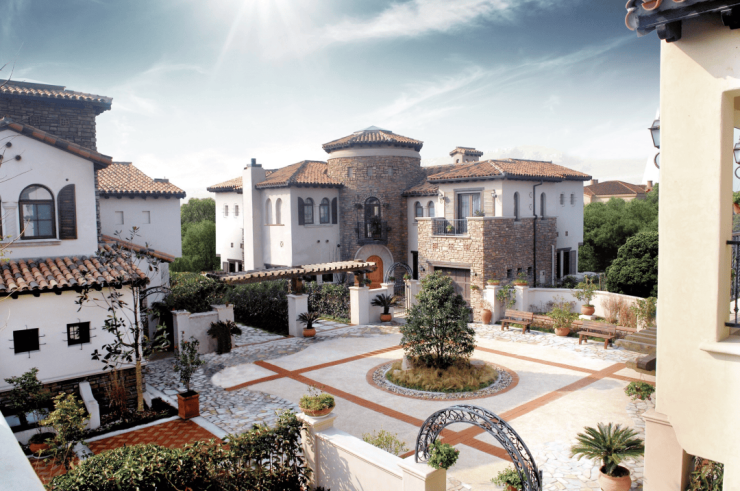 采用美国南加州的建筑风格,外立面采用淡黄色的手工Stucco抹灰外墙和红瓦屋顶,将原汁原味的南加州风格复制至此,同时融入原木、三色瓦片、红砖、铁艺、各式烟囱等元素,渗透一砖一瓦,仿佛置身异国小镇。