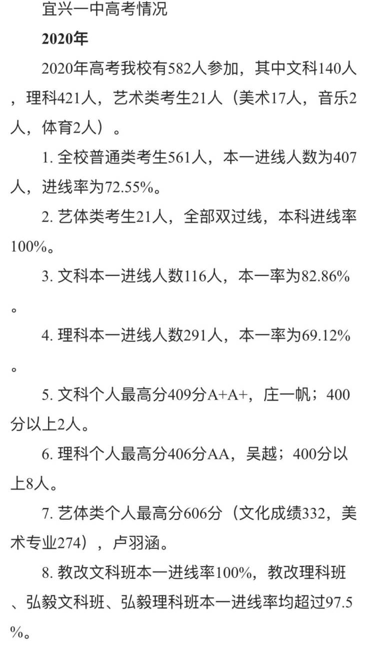 江苏省宜兴第一中学:江苏省重点高中,本一达线率72.55%