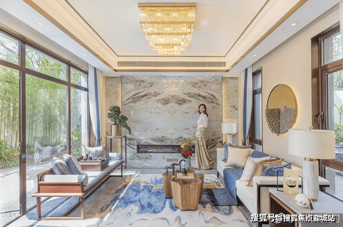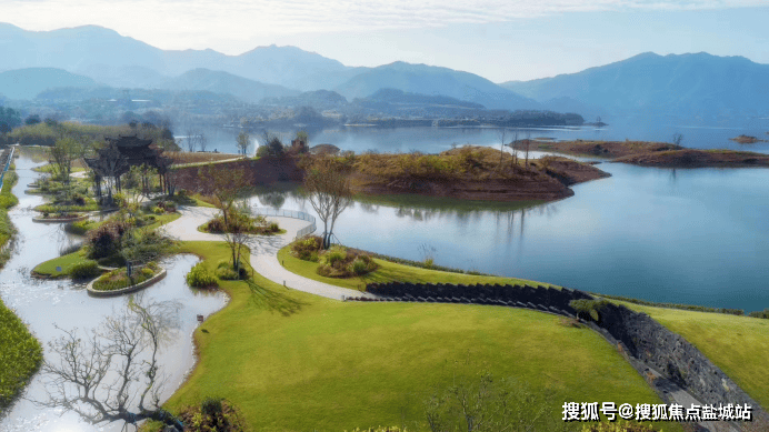 【设计理念】整体建筑呈现新中式风格,提取千岛湖自然山水元素与现代社会的居住环境相交融。她在半岛福址之上,得山环水抱,藏风聚气之利,揽青龙来水、白虎出水之势,继承人丁兴旺的家族理想。