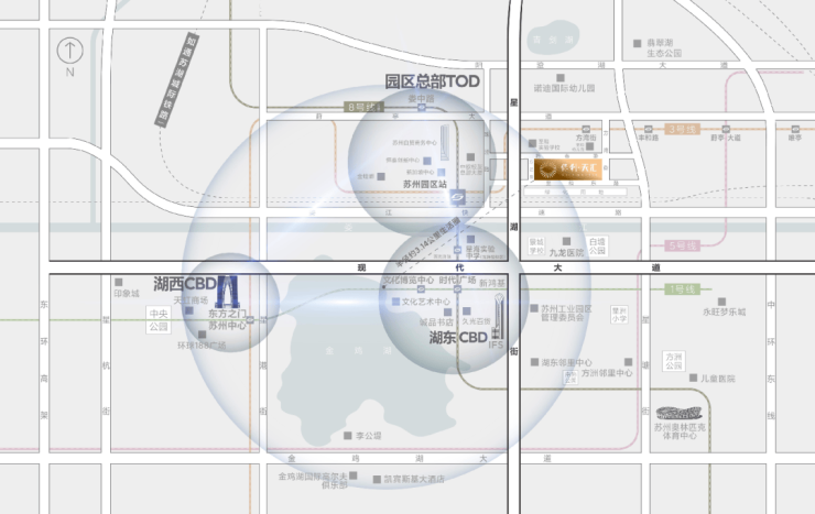 在约3公里的CBD黄金圈里,近揽园区高端城市地标,于此速达各大繁华场