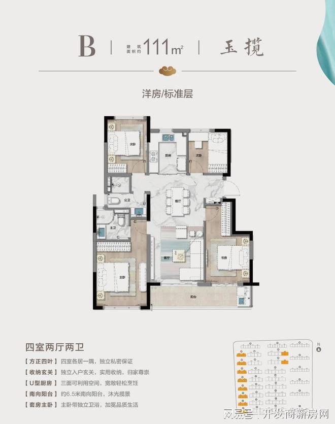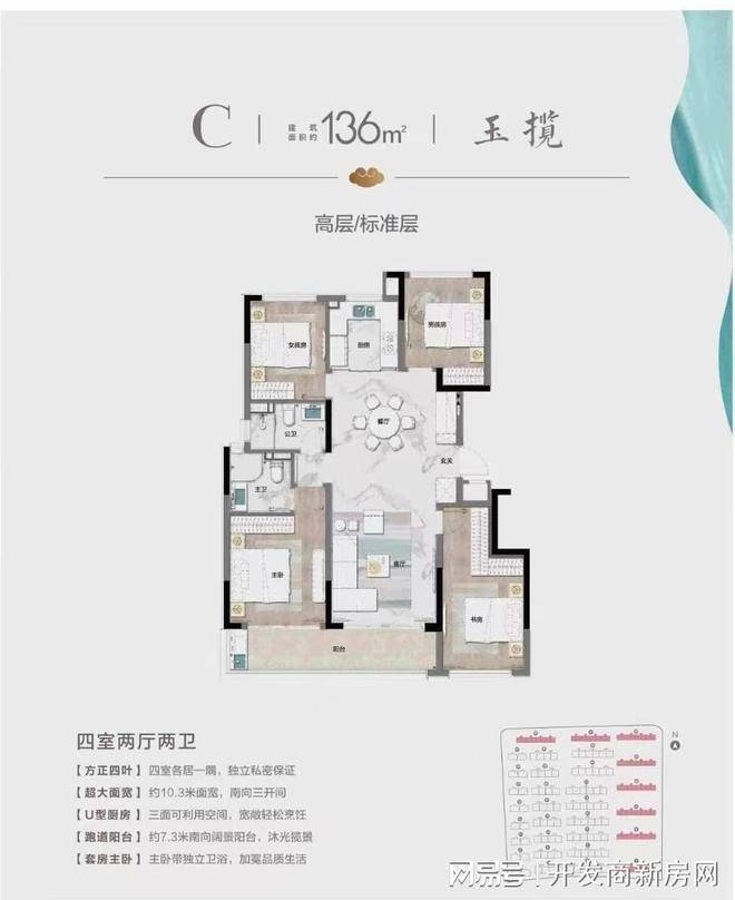 亮点4: 超高得房率,经典四叶草户型