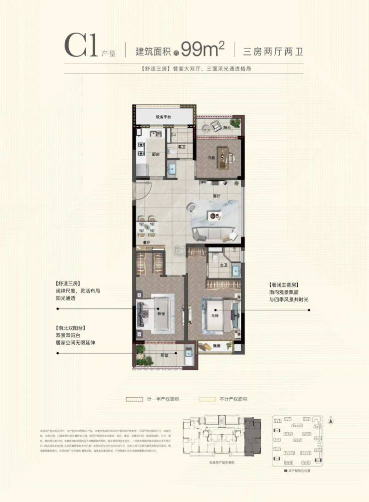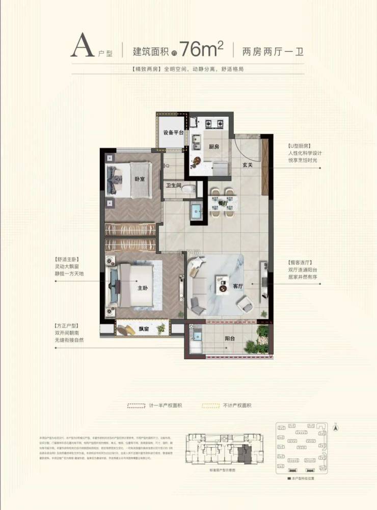 户型面积:建筑面积约76-135㎡