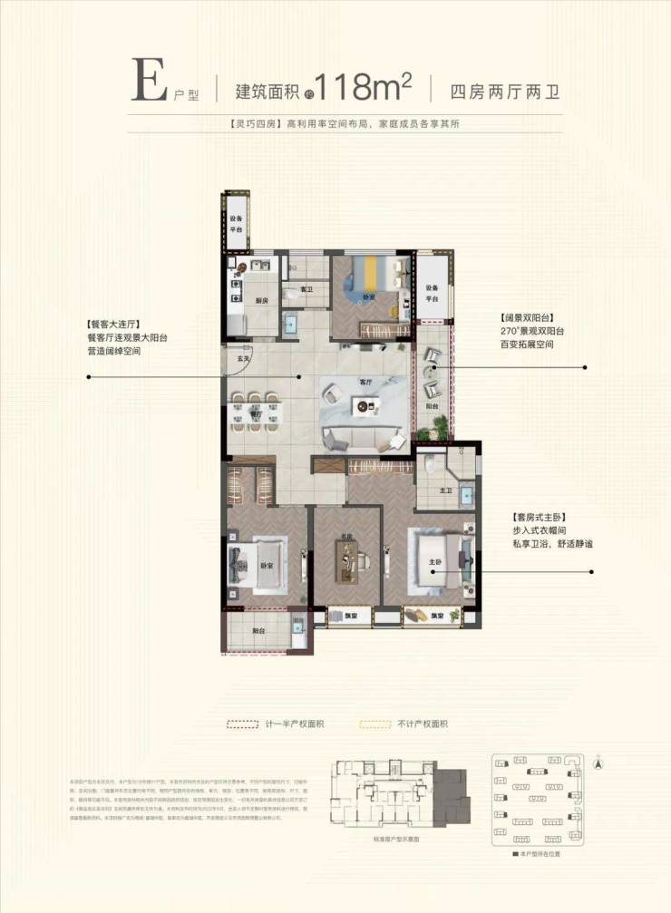 商城·嘉瑞华庭加推入市的11#楼瞰景央座,建面约135㎡奢阔四房,难得一席臻藏。