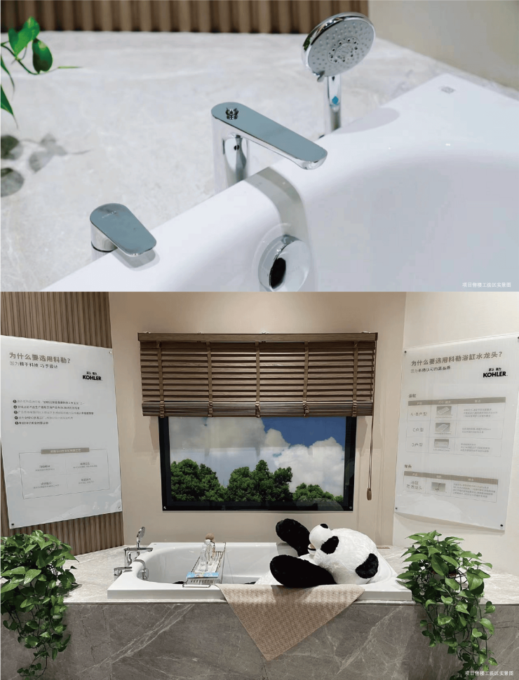 浴缸龙头——科勒,毛巾架——艾芬达,花洒、恒温水龙头、马桶以及暖风机——TOTO,智能坐便器(主卫)——松下。