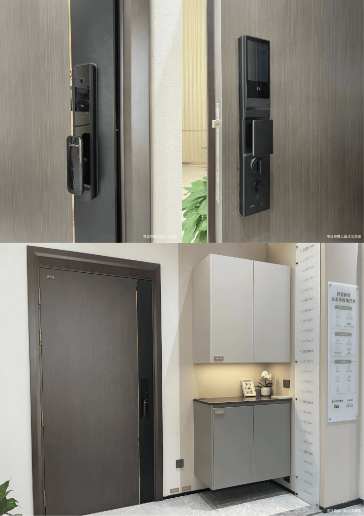 入户——春天木门,内置锌合金龙骨架、钢板门芯和双层门框,有效保证安全;