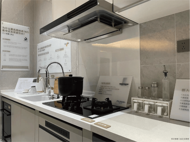 油烟机、燃气灶、洗碗机、蒸烤一体机等——富士帝(洗碗机、蒸烤一体机仅部分户型配备)。