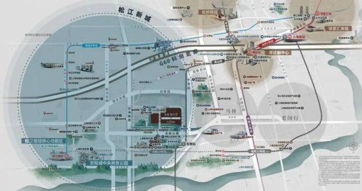 交通便捷:西揽松江新城,东临闵行主城,金山线3站入徐汇,6站徐家汇,周边沈海、G60沪昆高速等多条交通要道环伺,公共交通+自驾通勤都方便。