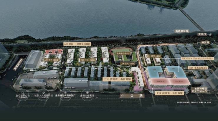 ——金陵玖园·滨湖道·生态总部办公,位于“中央生态绿心、环紫金山、环玄武湖两大环线"城市发展格局的核心区位,坐拥玄武湖世界级的人文生态景观价值,承载玄武文旅地标产业发展,立足中央路上、玄武湖畔,打造玄武乃至南京的城市级办公名片。