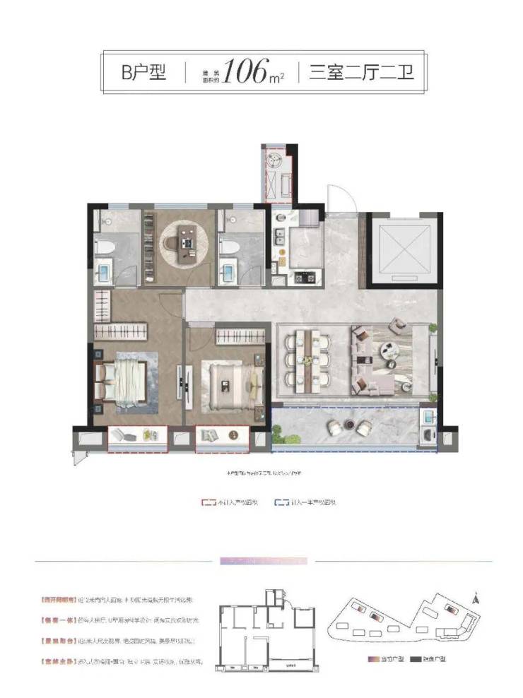 配套成熟 紧邻国际商贸城、金融CBD、宾王商贸区三大商圈,同时项目自带约2000方商业街区,引领城芯精奢配套。