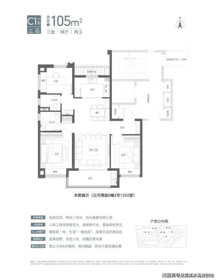 建面约105㎡3房2卫有宽厅和竖厅两种风格,其中宽厅户型好评度颇高。