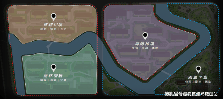 项目由两条天然水系穿流而过,形成三座天然的“岛屿社区”。