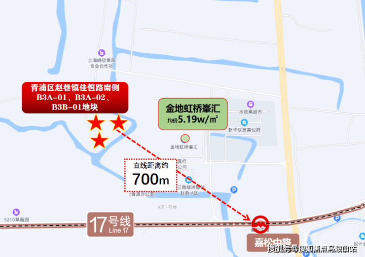 直线距离地铁17号线仅约700米